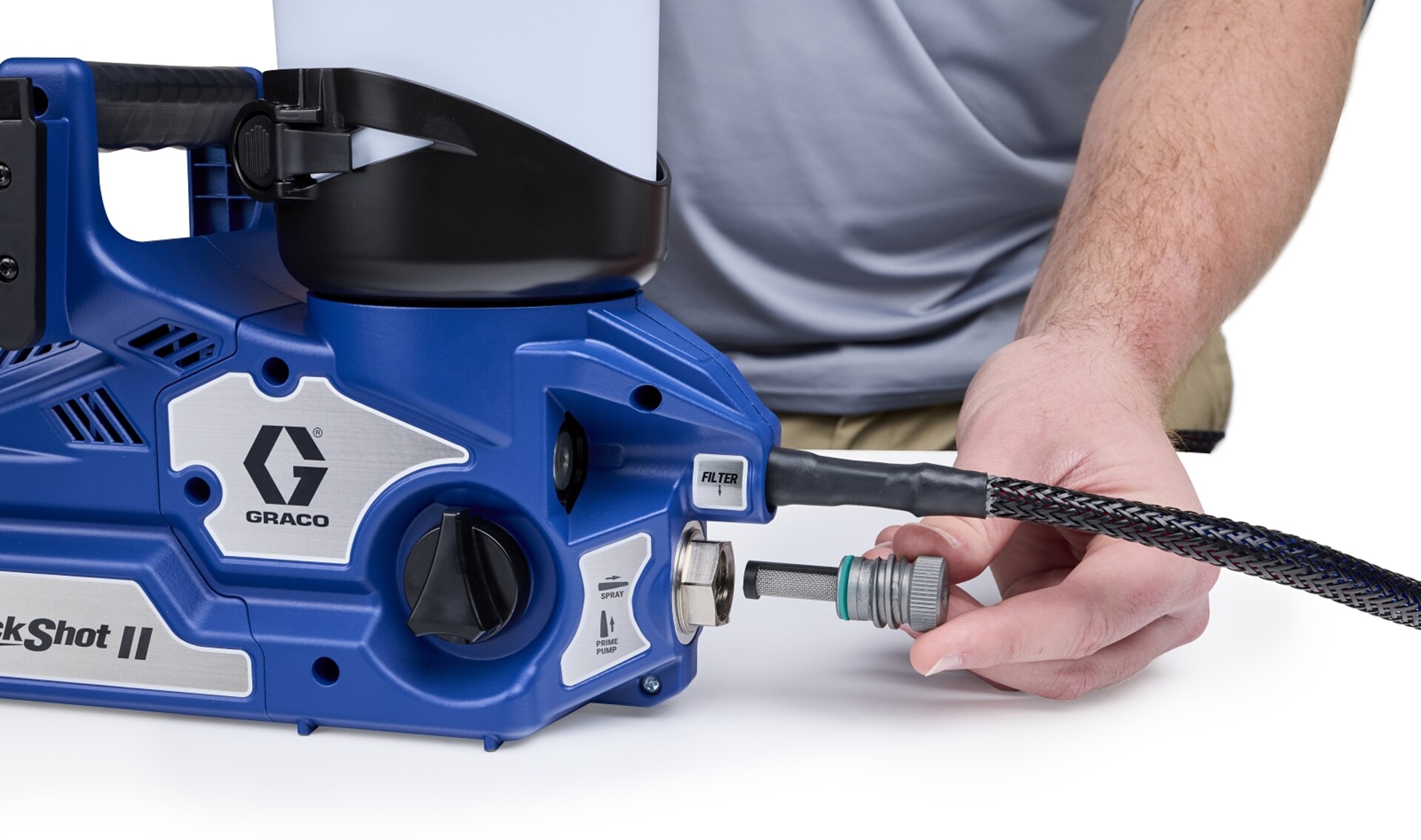 Completa più lavori con QuickShot II: il modo più rapido per ottenere una finitura perfetta. Massimizza i profitti riducendo al minimo i tempi di inattività con l'aerografo airless più versatile del settore. Elimina praticamente gli schizzi spruzzando la più ampia gamma di rivestimenti architettonici, dalle vernici a base d'acqua ai solventi e ai materiali infiammabili. Perfetto per tutti i piccoli lavori come armadi, porte, cornici, sottotetti, grondaie e altro ancora.